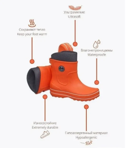 Сапоги ЭкоБутс полностью непромокаемые, разработаны специально для сырой и дождливой погоды.